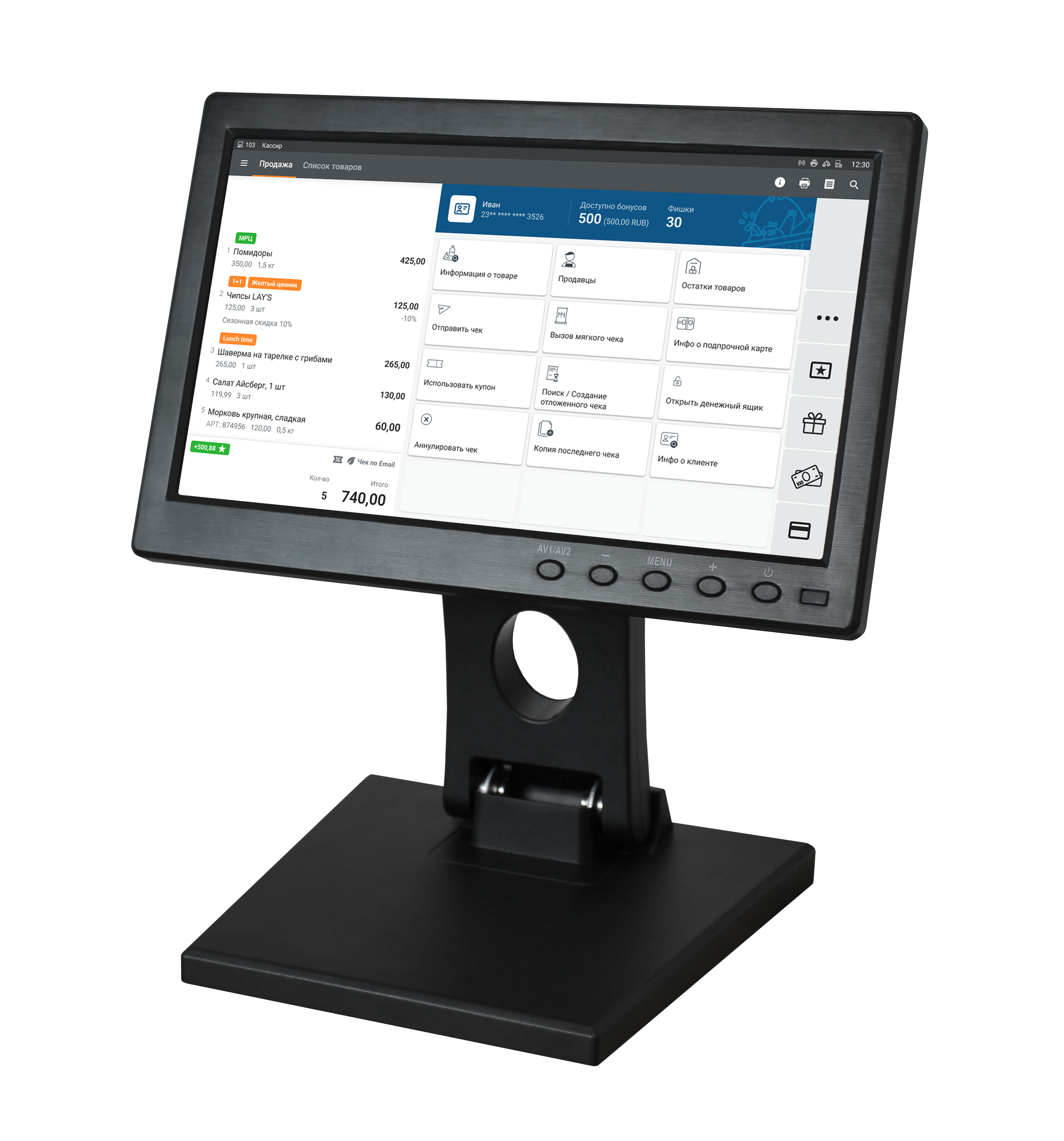 Монитор поставляется с удлиненными 3-метровыми кабелями VGA и питания, что позволяет устанавливать его в любом удобном месте кассового узла. Больше не нужно беспокоиться о расположении розеток – гибкость монтажа гарантирована.