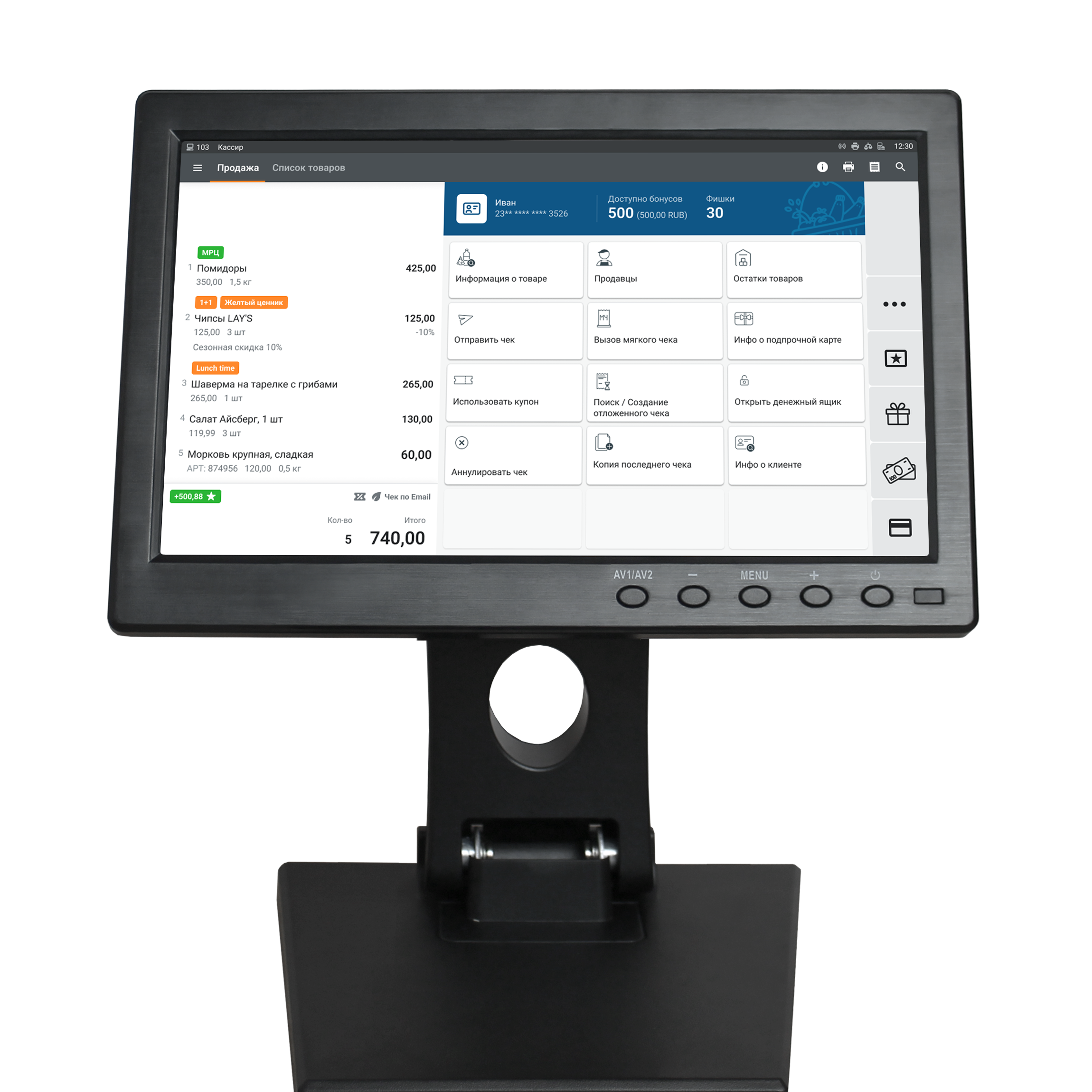 Лидер среди 10-дюймовых кассовых мониторов: высокая яркость 350 кд/м², контрастность 700:1 и широкие углы обзора (178°) обеспечивают четкое и яркое изображение даже при прямом падении солнечных лучей.