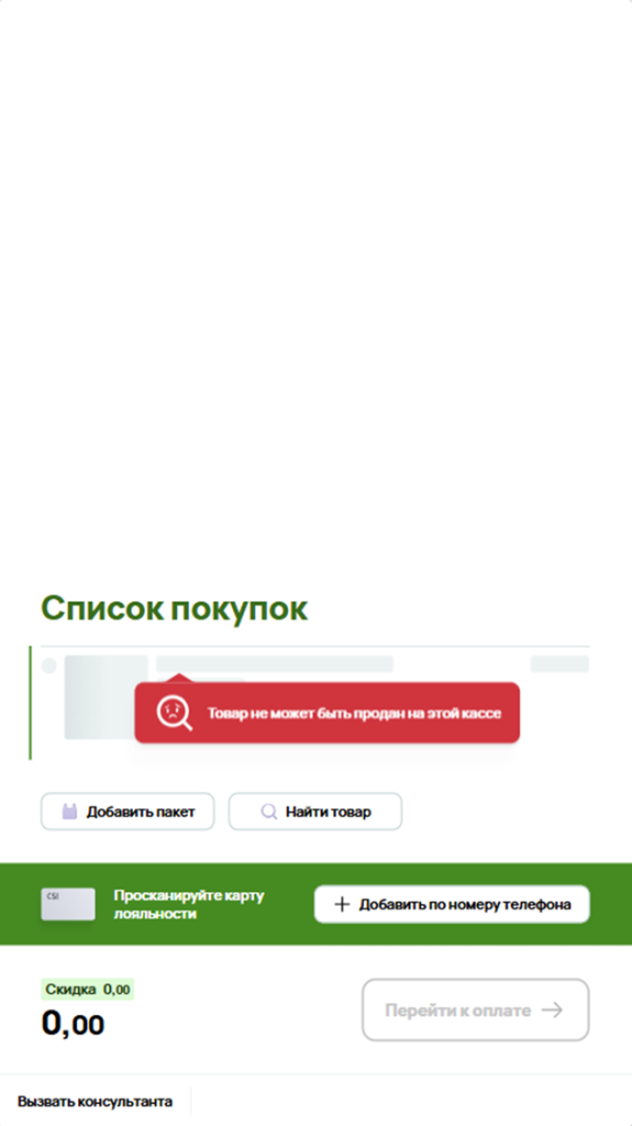 Раньше такие товары можно было удалить только в режиме консультанта. В зависимости от существующих настроек контроля удаления, покупатели могут самостоятельно удалять маркированные товары из чека. Если настройки требуют подтверждения, покупатели смогут удалить товар только с одобрения консультанта при переходе к оплате.