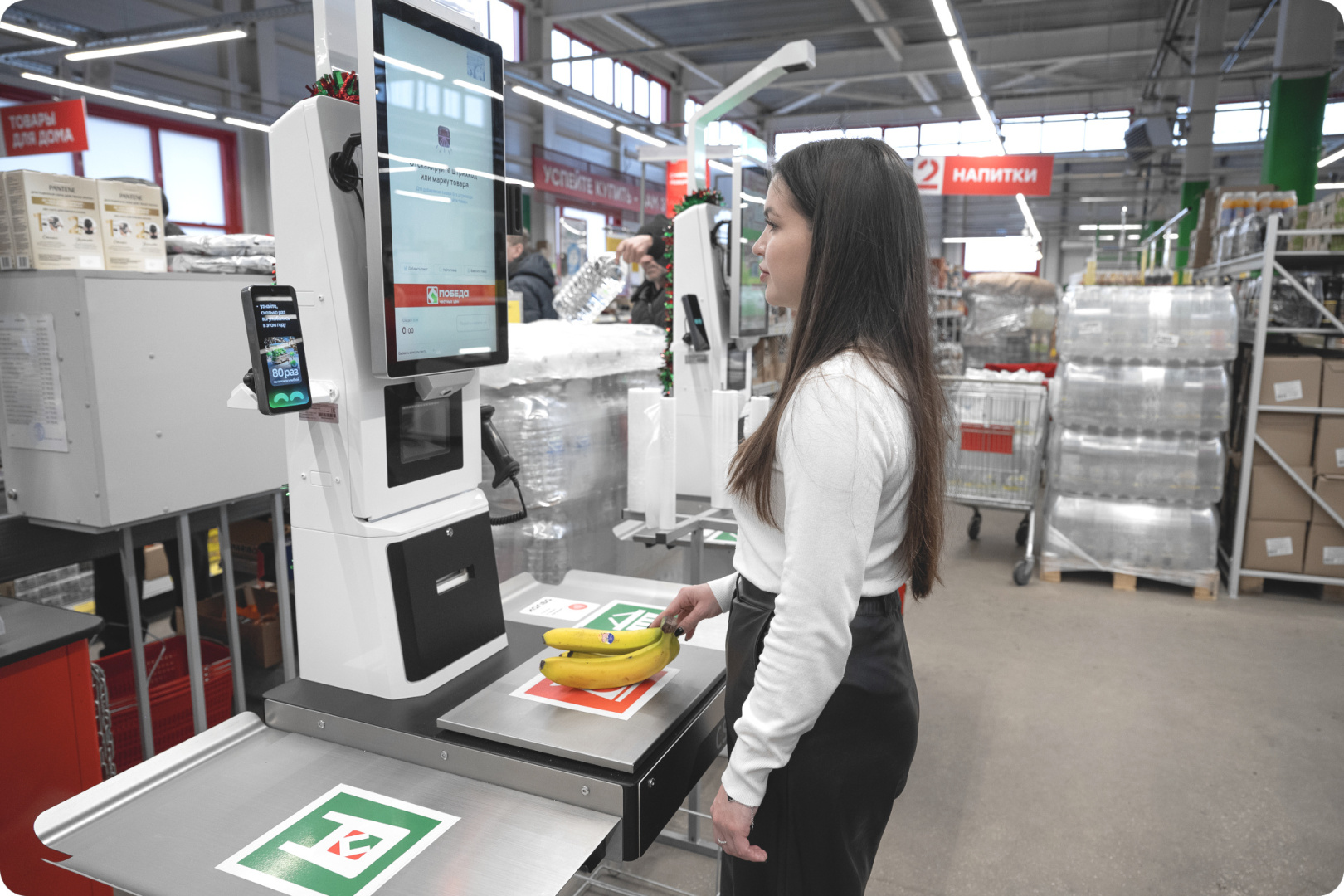 Одной из первых в российском ритейле торговая сеть «Победа» внедрила распознавание весового и штучного товара не только на кассах самообслуживания (КСО), но и на классических кассах. Цели проекта — ускорение обслуживания покупателей, сокращение нагрузки на кассиров и затрат на весы в торговом зале. А началась серия пилотных проектов с установки касс самообслуживания.